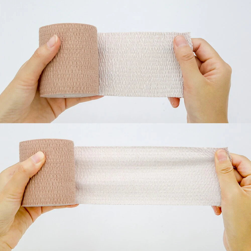 - Venda elástica con soporte poroso de poliéster y adhesivo cohesivo